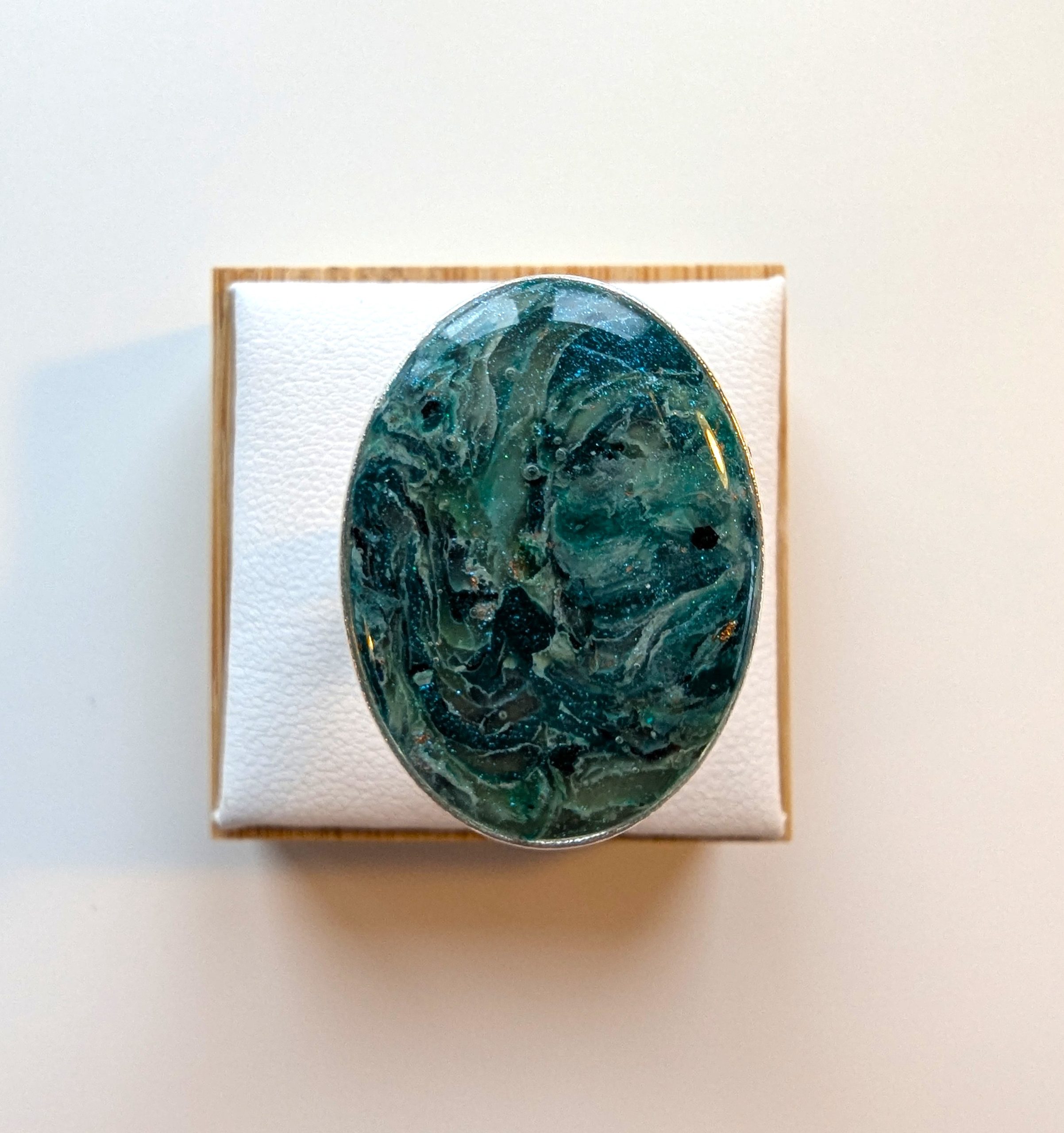 Ovalen Faux Jade steen in een verstelbare zilverkleurige ringbasis.